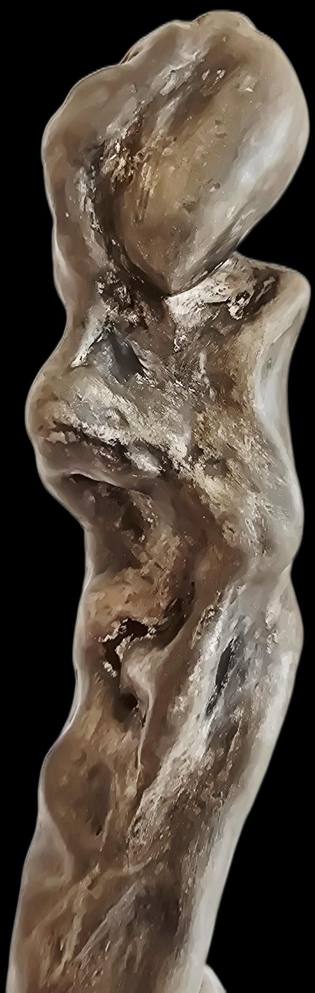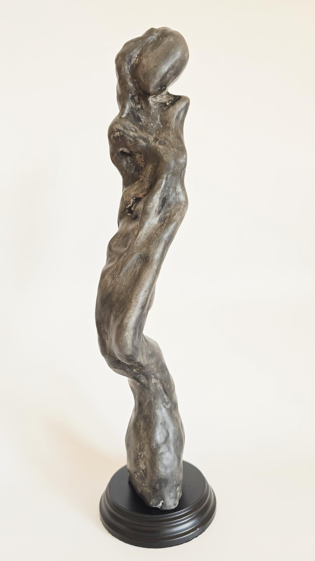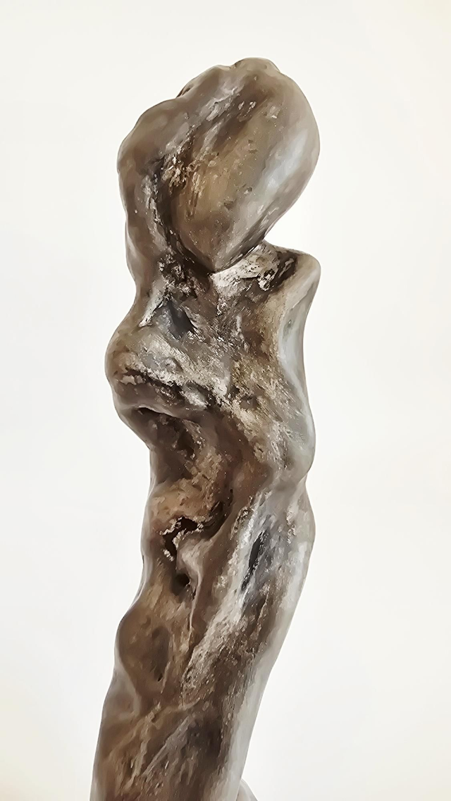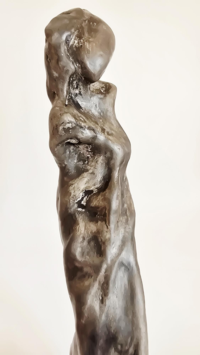 Sculpture en terre de faïence blanche Lisse. Patine aux pigments et à la cire.