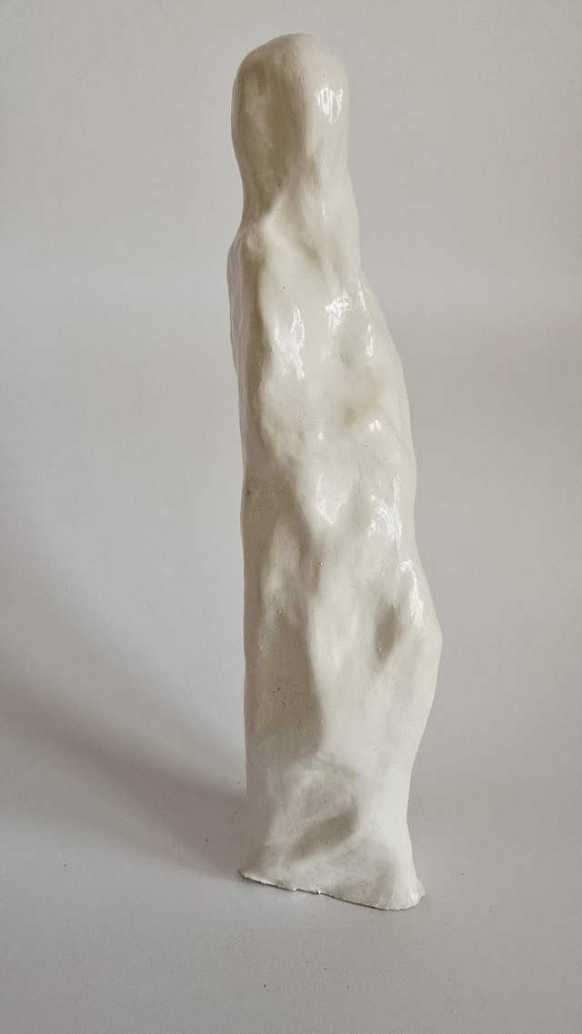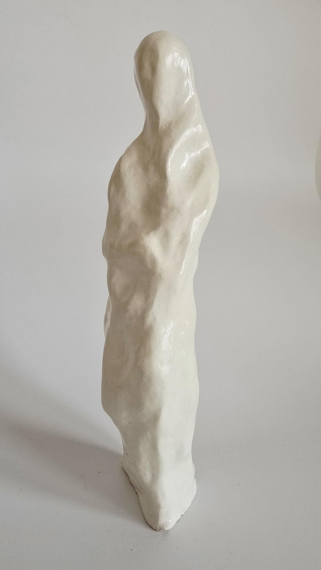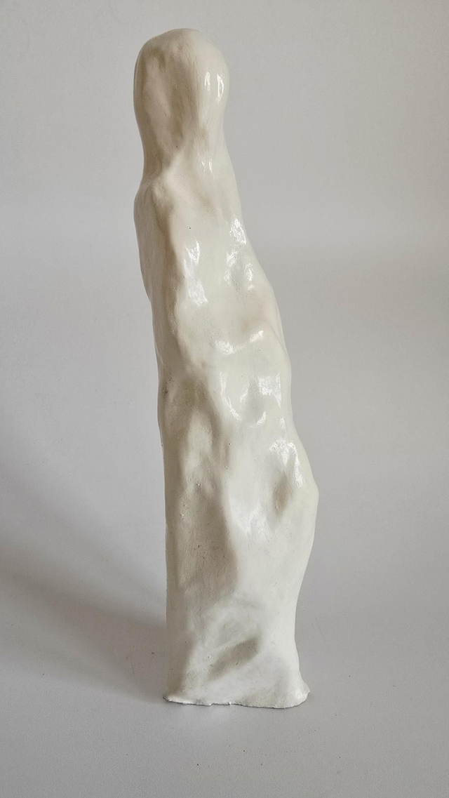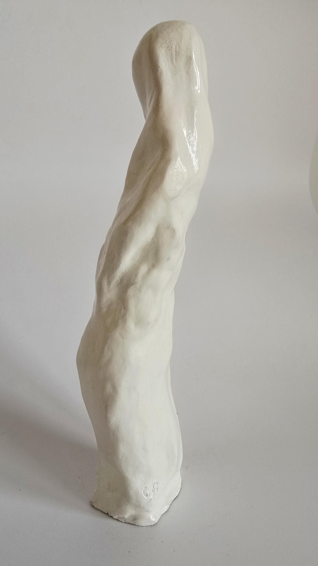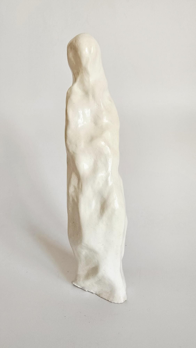Œuvre réalisée en terre de grès lisse blanche et patinée aux pigments et à la cire.