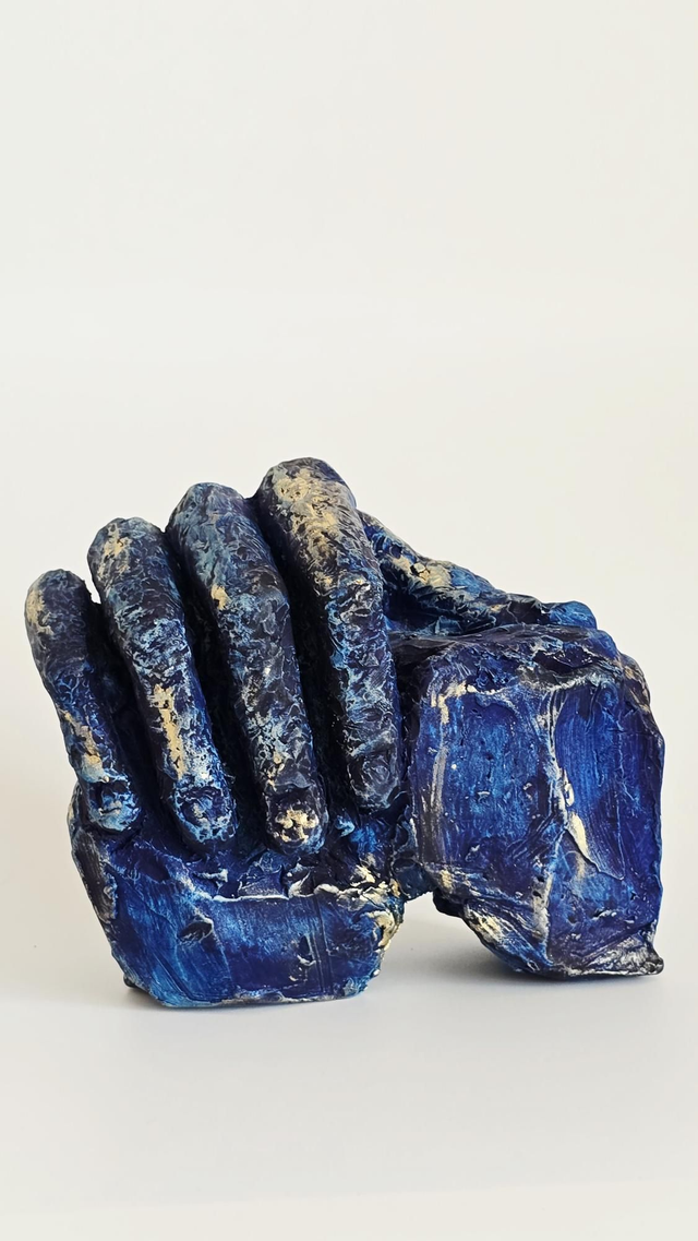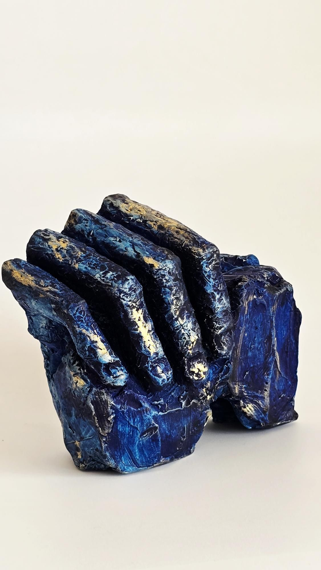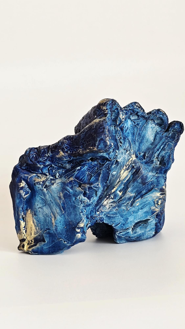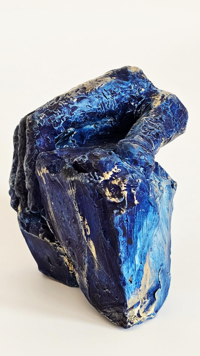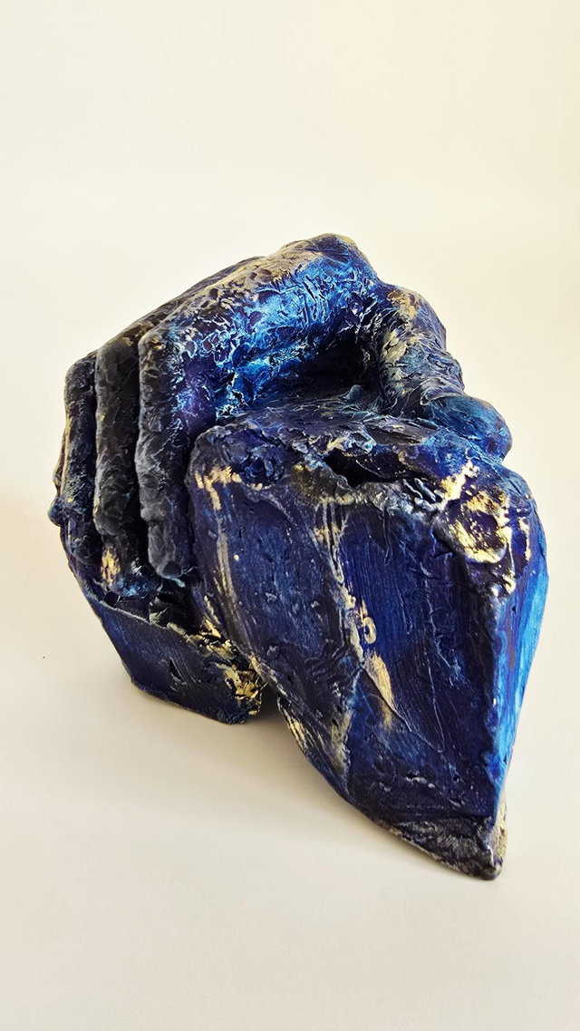 Œuvre réalisée en terre de grès lisse blanche et patinée aux pigments et à la cire.