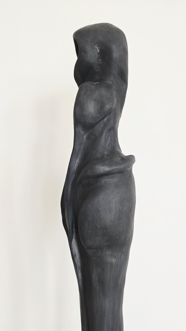 Personnage sans visage dont le corps laisse entrevoir, par un subtil mouvement, une émotion qui pourrait l'habiter.