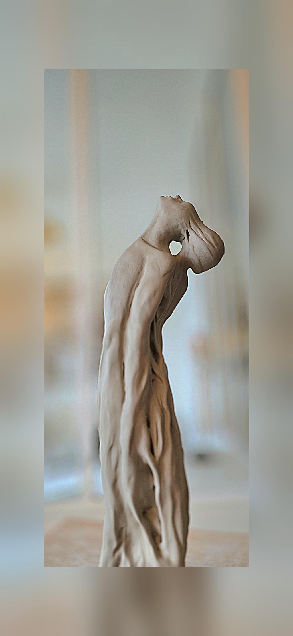 A la conception d'une sculpture, je façonne la terre de manière instinctive mais tout en prenant en compte les contraintes techniques qu'elle m'impose.