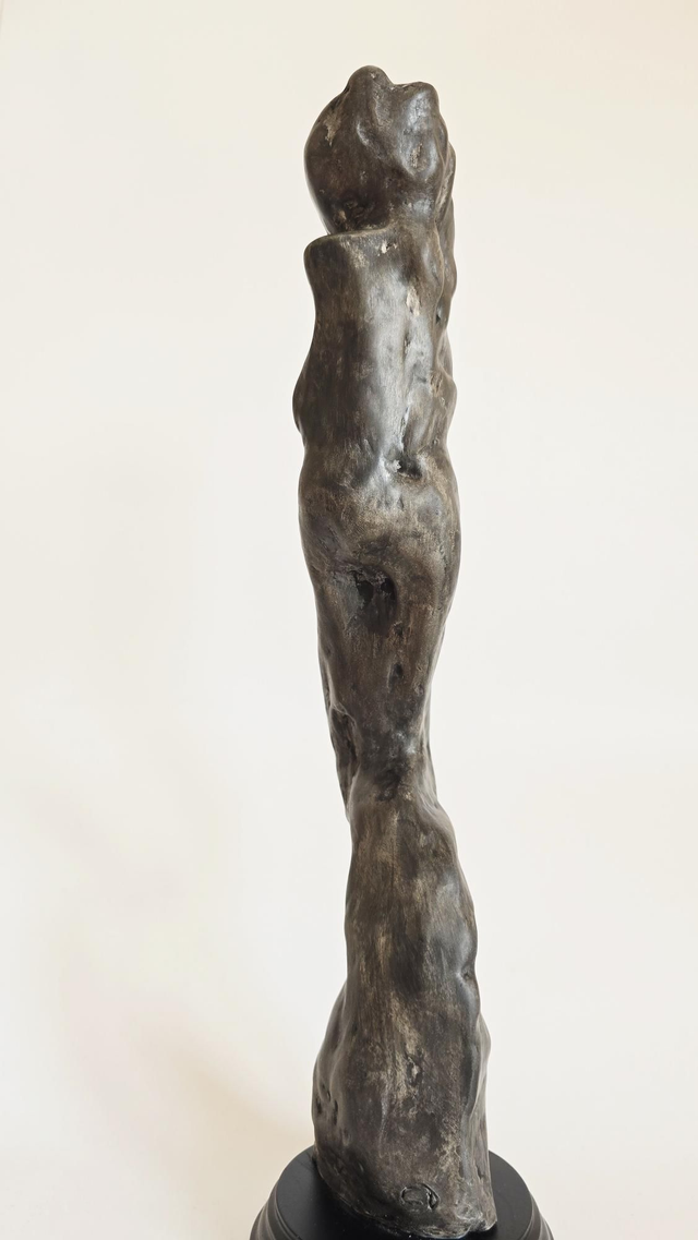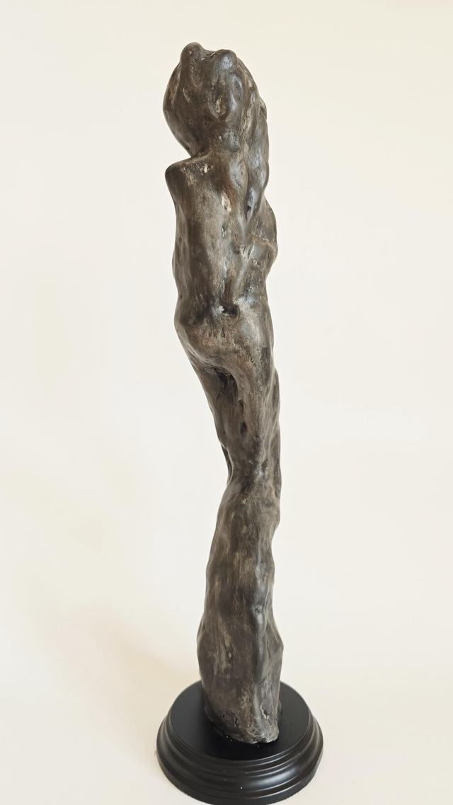 Sculpture en terre de faïence blanche Lisse. Patine aux pigments et à la cire.