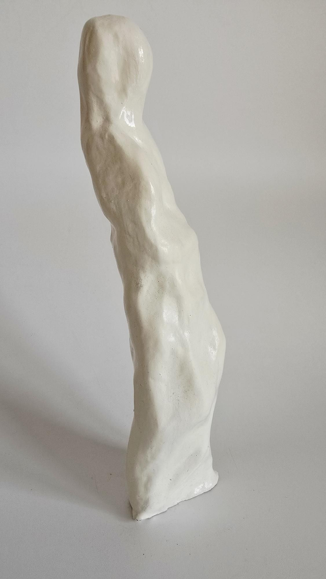 Œuvre réalisée en terre de grès lisse blanche et patinée aux pigments et à la cire.