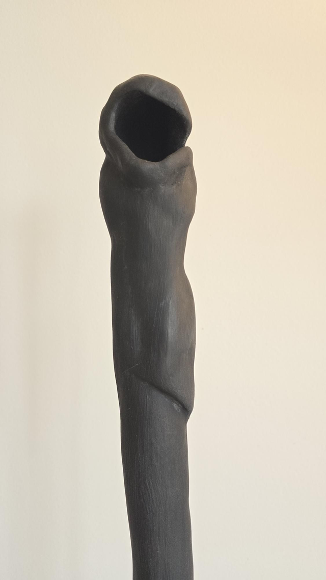Personnage sans visage dont le corps laisse entrevoir, par un subtil mouvement, une émotion qui pourrait l'habiter.
